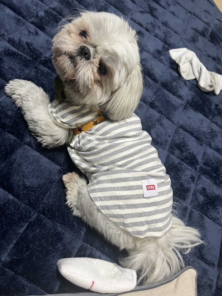冬の寒いときは、お散歩に行くのに外に出ると寒いのかブルブル震えています。そのため冬の寒いときは洋服を着せるのが日課になってきました。